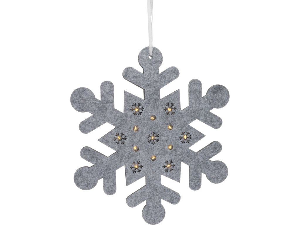 Nádherná sněhová vločka je ztělesněním vánoční kouzelnosti. Vyrobena z kvalitního filcu a osvícena LED osvětlením, tato vločka přinese do vašeho interiéru pohádkovou atmosféru.