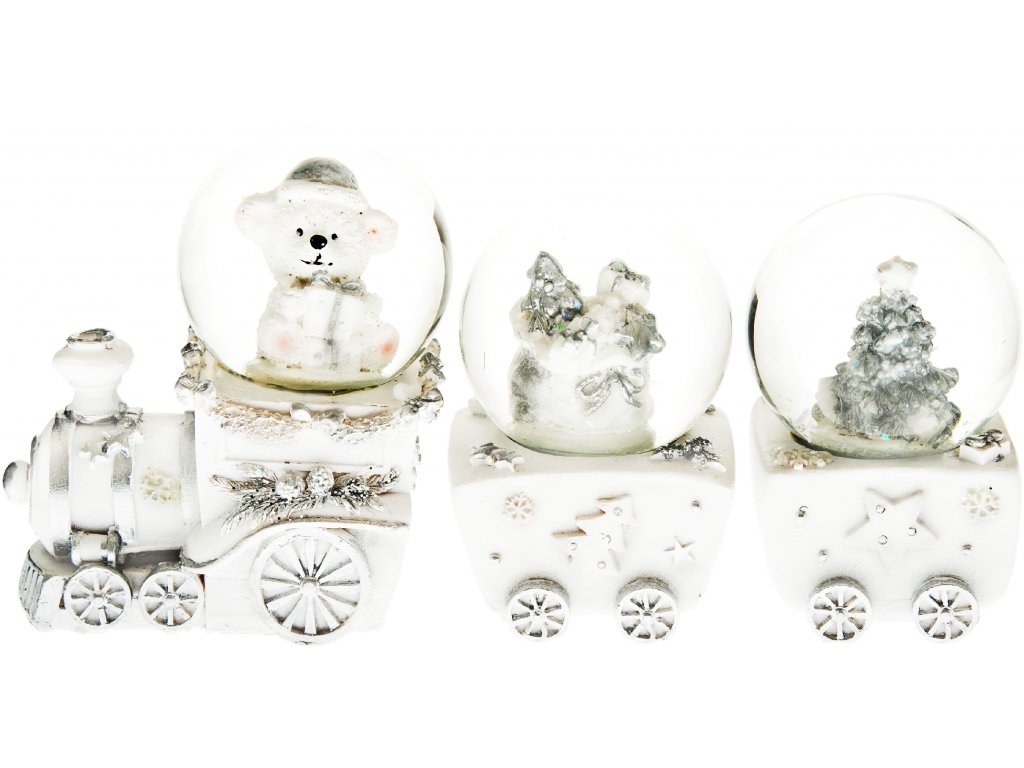 Sněžítko vláček s vagony, bílo-stříbrný, set 3ks