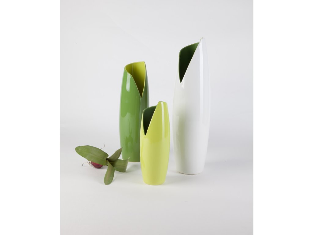 Keramická váza "Banana" v barevné kombinaci světlezelené a zelené, vysoká 27cm.