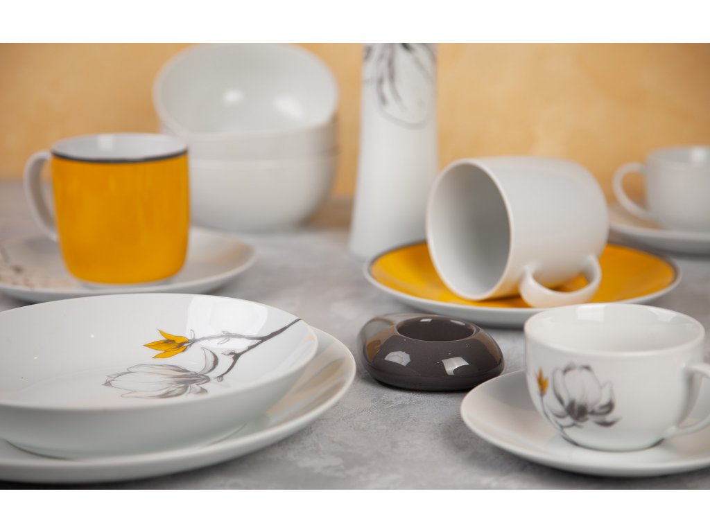 Magnolie, českým názvem Šácholan jako dokonalé umělecké dílo přírody, patří jistě mezi nejkrásnější kvetoucí stromy. Designeři české značky by inspire...porcelán s českou duší zvolili trochu netradiční odrůdu ve žluté barvě. Magnolie je v Česku hojně pěstována jako okrasná dřevina. Proč si tedy nezkrášlit i svůj domov skvostem v podobě dekoru větvičky Magnolie?