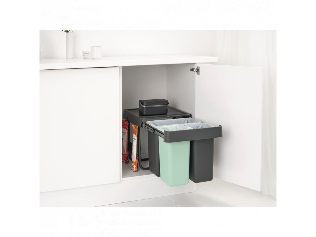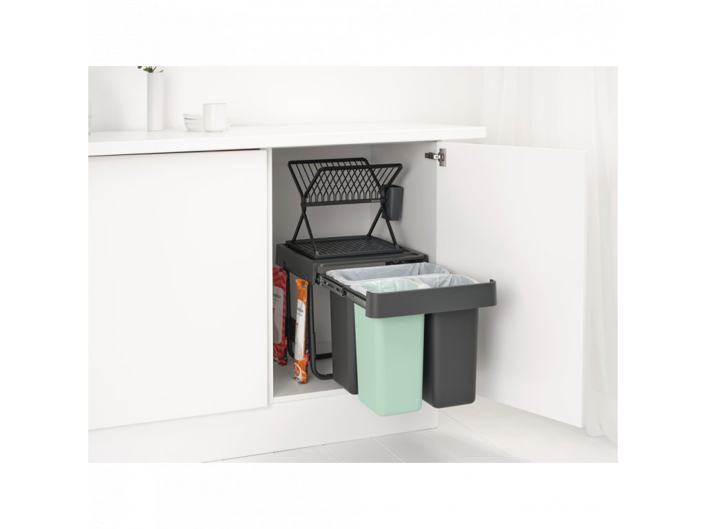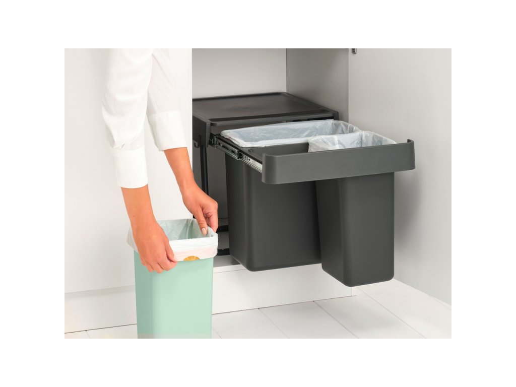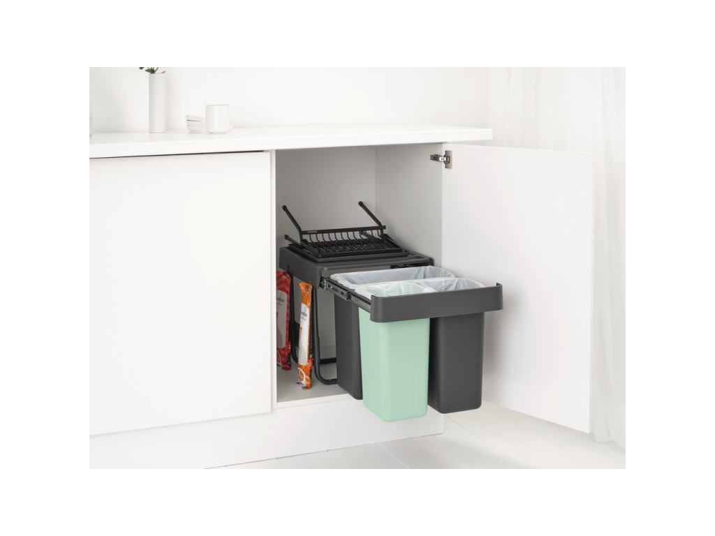Zvyšte svou kapacitu pro třídění odpadu a ušetřete prostor ve vaší kuchyni s vestavěným košem Brabantia Sort & Go o objemu 10+10+20 litrů. Tento praktický koš je navržen tak, aby se snadno schoval do skříně, a to díky jednoduché montáži montážního rámu (samonosný, takže se nemusíte obávat prohýbání dveří!). Diskrétní koše lze umístit do většiny kuchyňských skříněk, bez ohledu na to, zda se dveře otevírají doleva nebo doprava. Navíc nabízejí extra úložný prostor nahoře a háčky na straně pro lepší organizaci. Díky dlouhé teleskopické liště je můžete jednoduše vytáhnout jednou rukou. A samozřejmě, čištění, vyndávání a vyprazdňování těchto košů jsou naprosto jednoduché. Skvělá kombinace praktičnosti a efektivity pro vaši kuchyni!