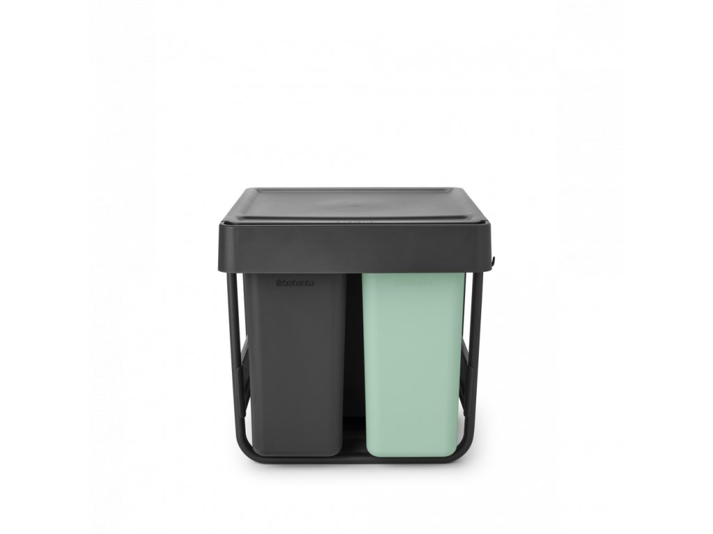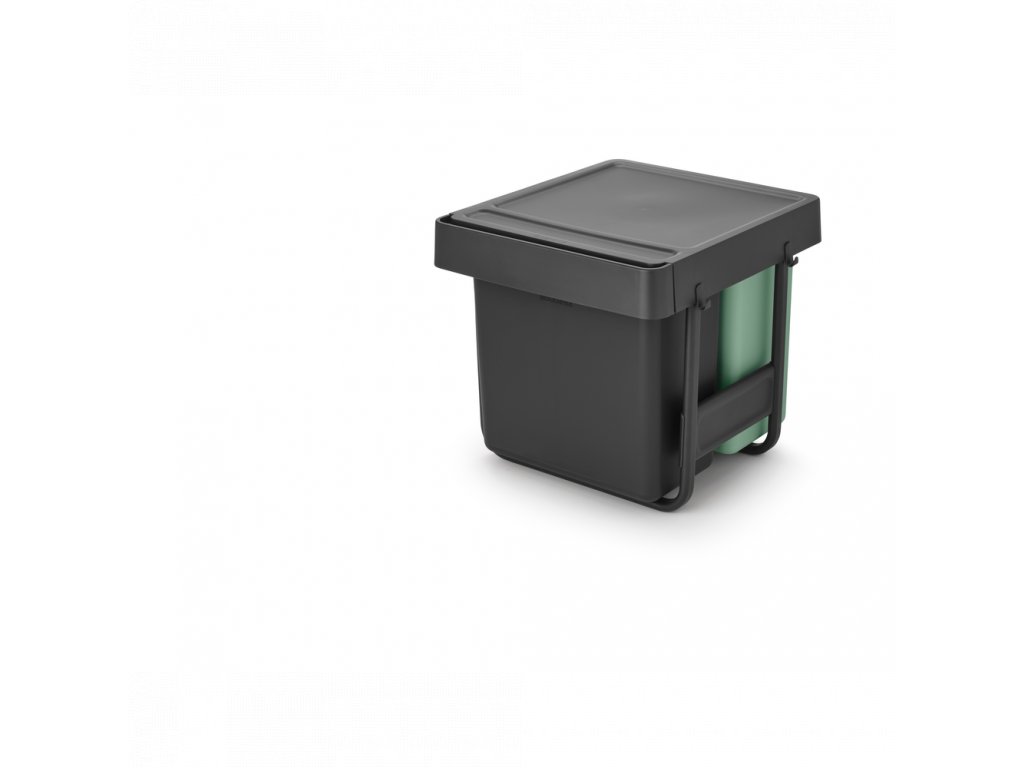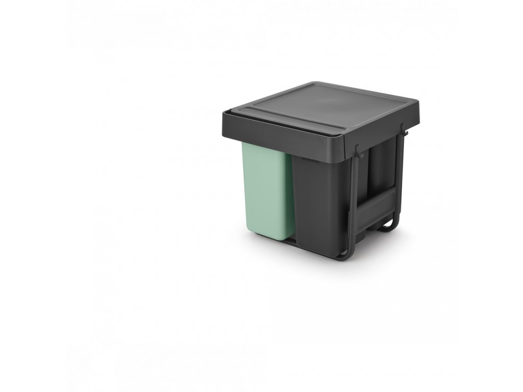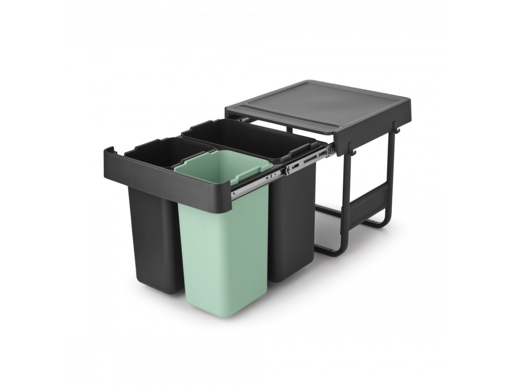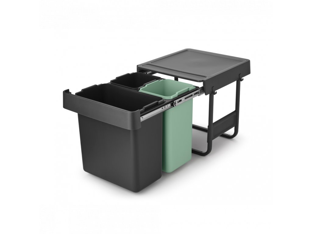 Vestavný koš Sort & Go - 10+10+20 L, tmavě šedá a nefritově zelená