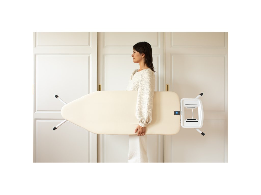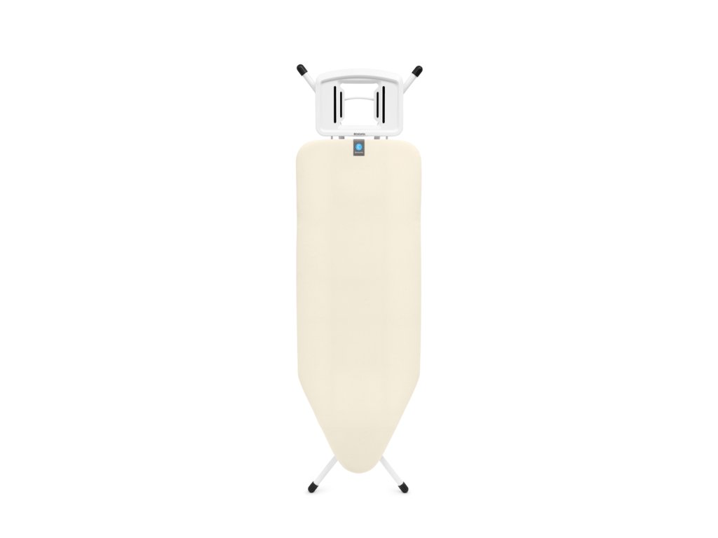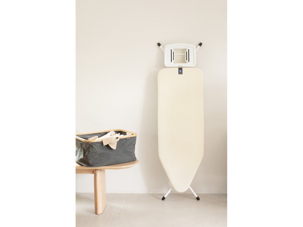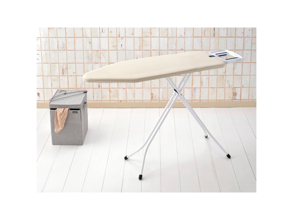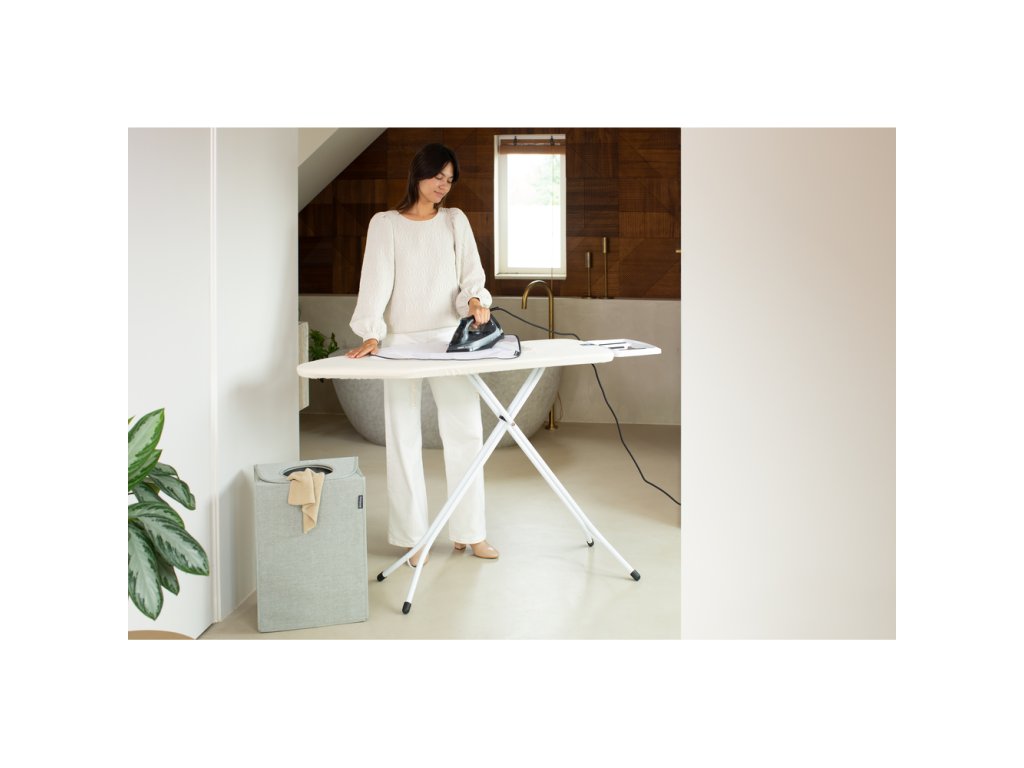 Hledáte extra velké a stabilní žehlicí prkno pro pohodlné a rychlé žehlení? Brabantia C přináší prostornou plochu (124 × 45 cm), která vám umožní žehlit efektivněji – ideální pro velké kusy prádla, košile i ložní prádlo. Pevná odkládací plocha je navržena pro běžné i parní žehličky (do 15 cm).